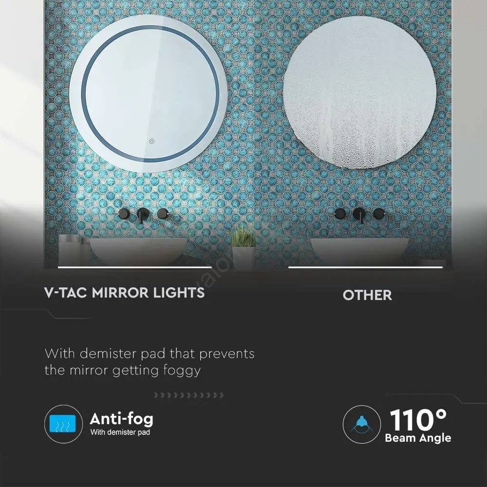 LED kylpyhuoneen lämmitetty valaistu peili LED/25W/230V IP44 3000K/4000K/6400K | Valomania