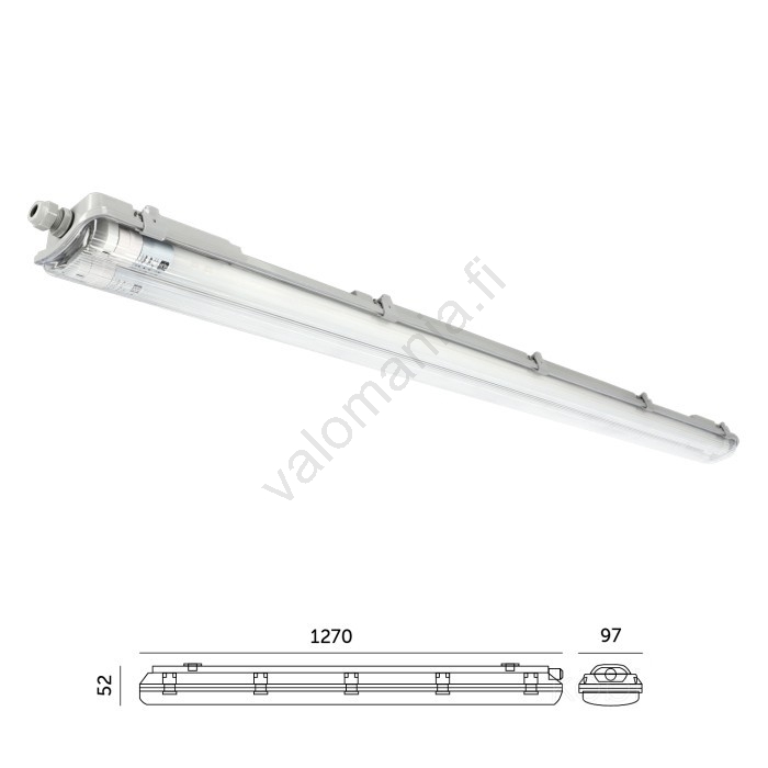 • LED-tekninen loisteputkivalaisin T8, 2x G13, 18W, 230V, 6500K, IP65, 127 cm