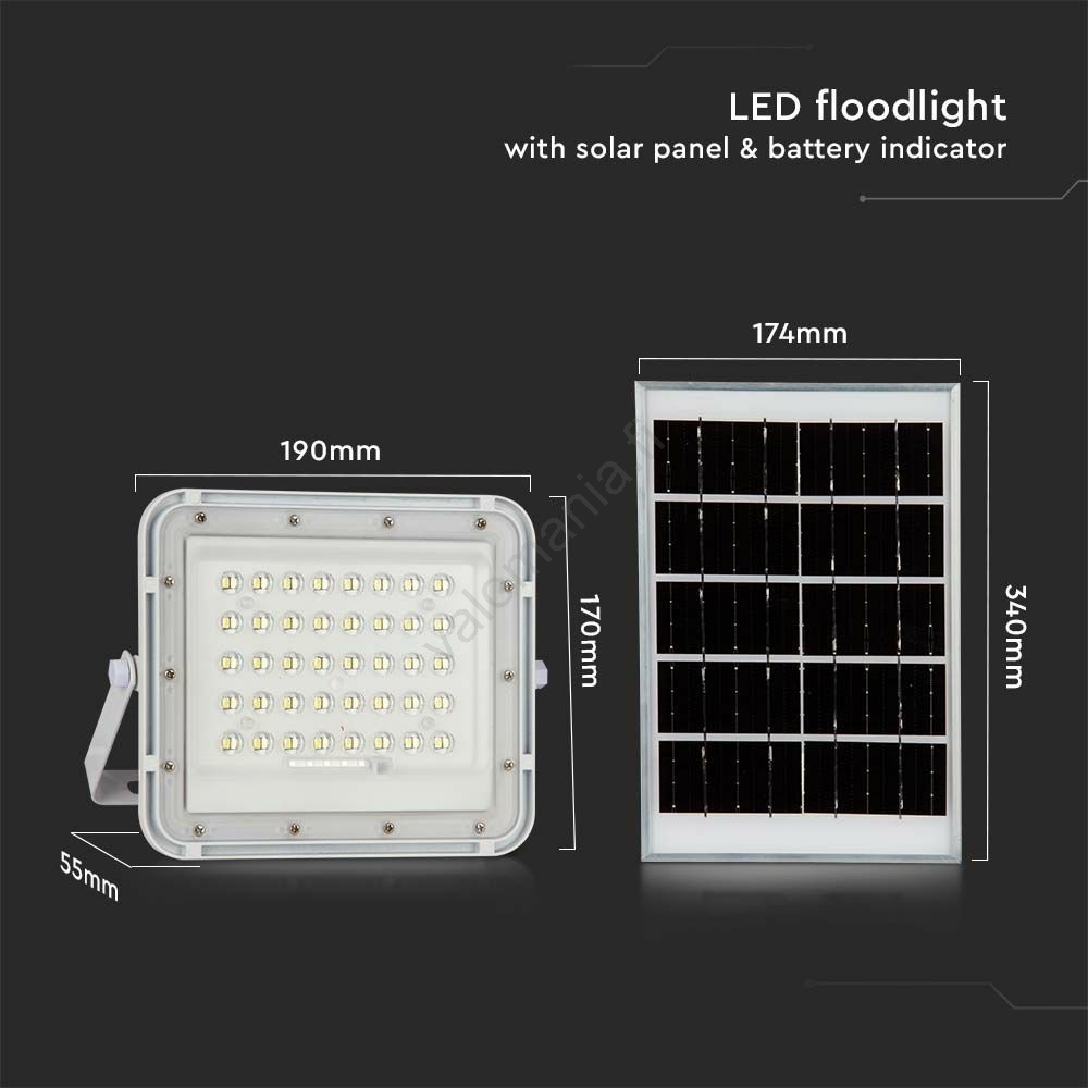 LED Aurinkokenno ulkovalonheitin LED/10W/3,2V IP65 6400K valkoinen + +kaukosäädin | Valomania