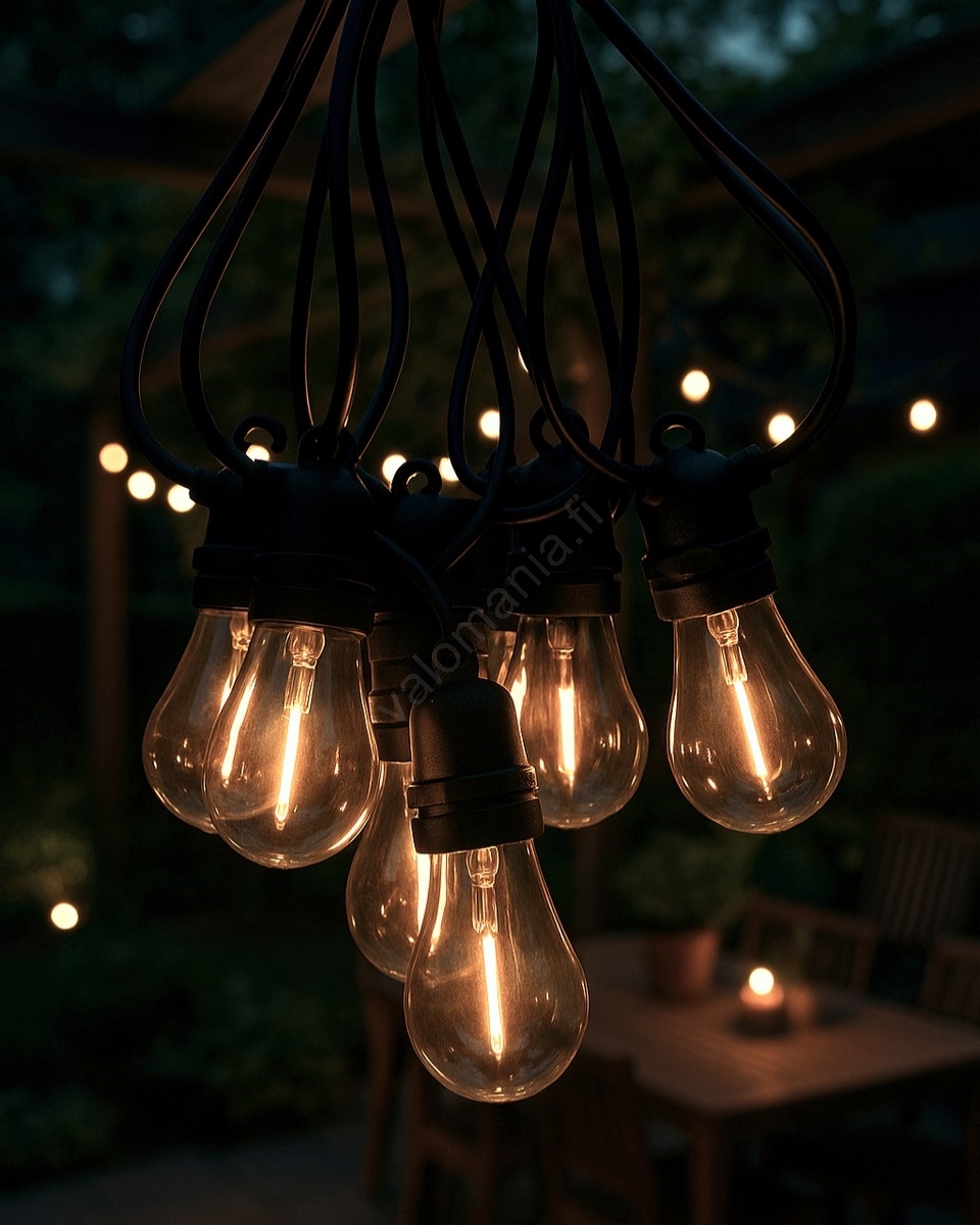 LED-ulkovalosarja 10xLED/0,36W/230V 8 m IP44 musta | Valomania