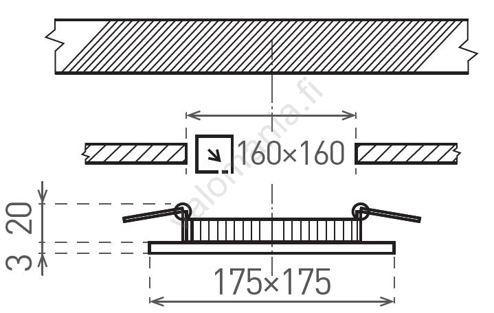 • Valaisin on varustettu jousikiinnikkeillä, jotka mahdollistavat helpon asennuksen esimerkiksi kipsilevyyn.