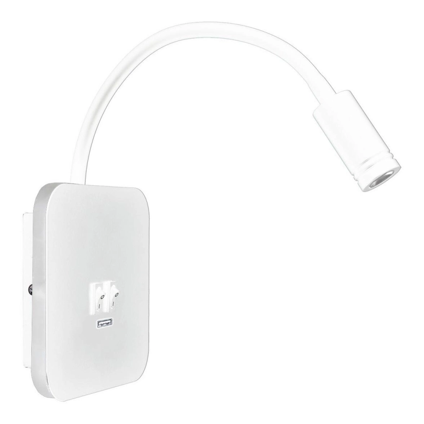 • LED-joustava seinävalaisin USB-portilla BASE LED/8W+LED/2W/230V valkoinen/hopea