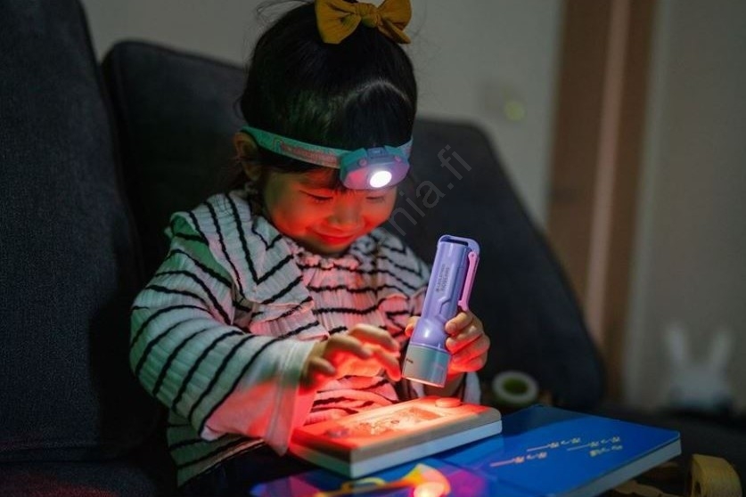 • Lasten käsivalaisin, suunniteltu erityisesti pienille löytöretkeilijöille ja heidän herkille silmilleen.