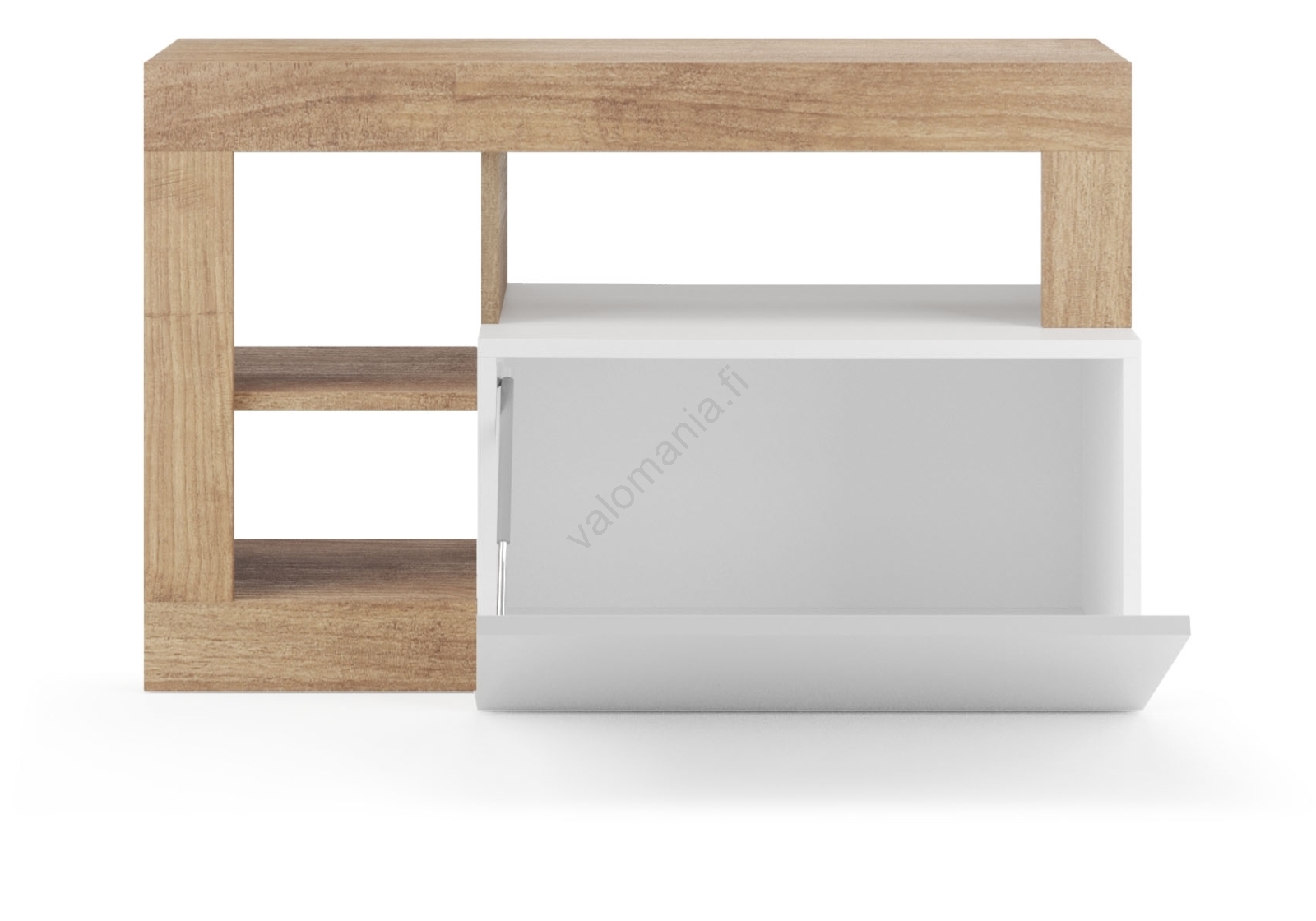 • Siinä on 3 avointa hyllyä sekä sisäinen kippihylly laukkujen, kenkien ja kausitavaroiden säilytykseen.
