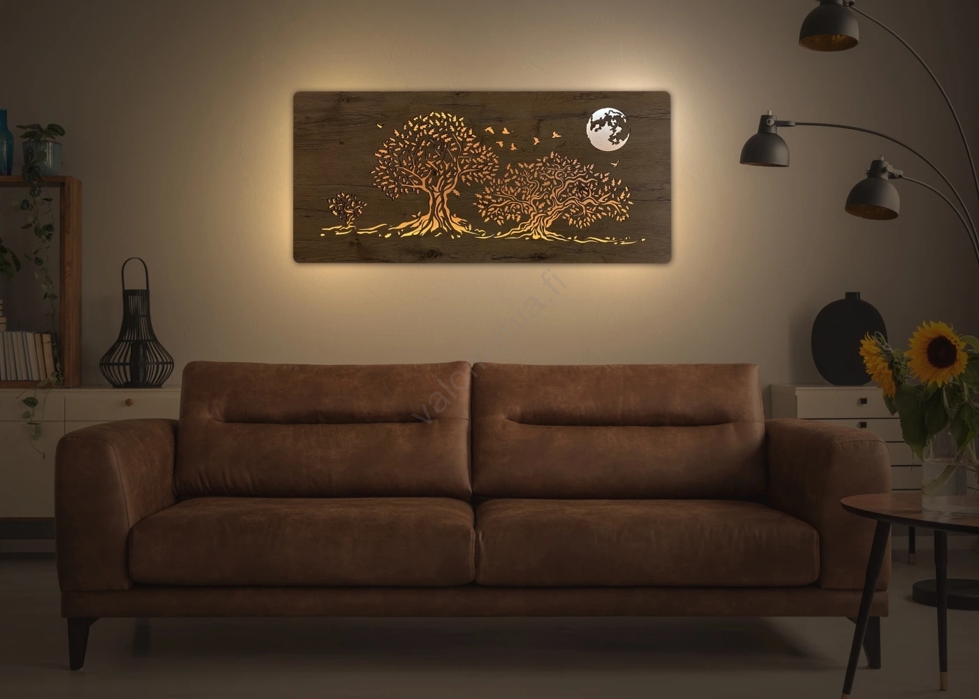 • Kuvallinen LED-valaisin luonnonaiheisilla motiiveilla.