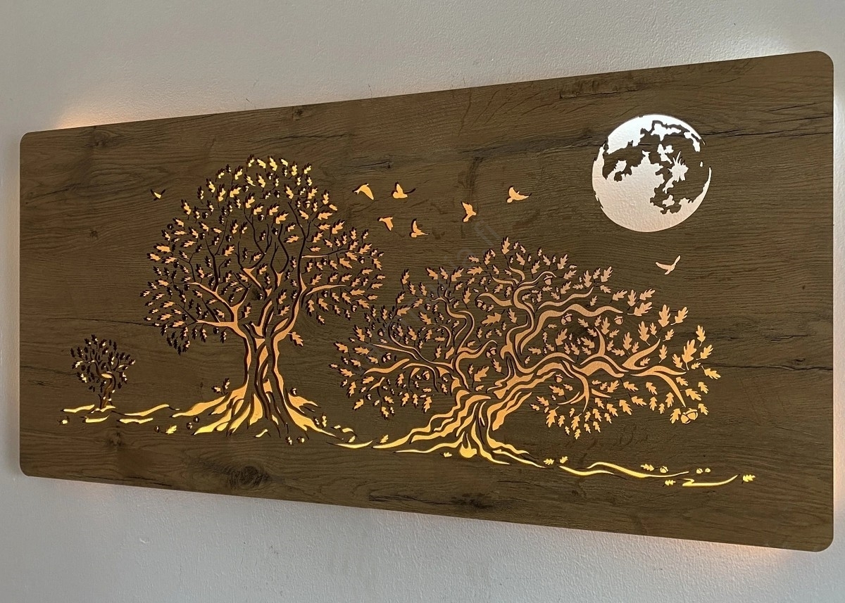 Li-Go 5042/DUB2 - LED-himmennettävä seinäkoriste LED/24W/230V 110x50 cm tammi/kolme tammea ja kuu
