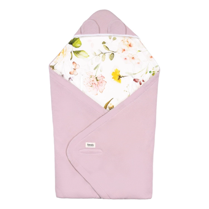 Lionelo - TRAVEL SWADDLE 90x90 cm turvaistuimeen tarkoitettu käärepeitto, vaaleanpunainen kukkakuosi