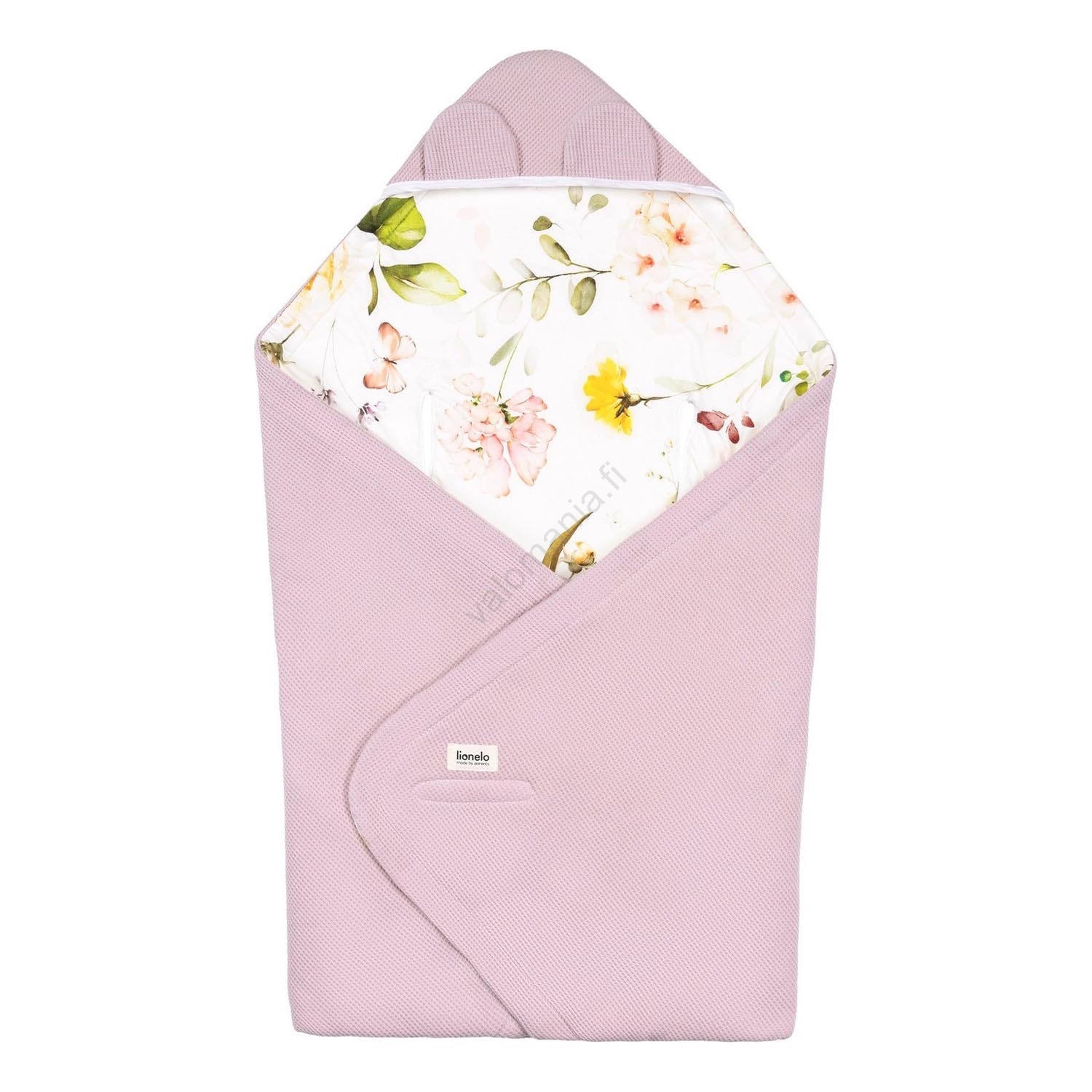 Lionelo - Turvakaukalon kietaisupussi TRAVEL SWADDLE 90x90 cm Vaaleanpunainen kukkakuosi | Valomania