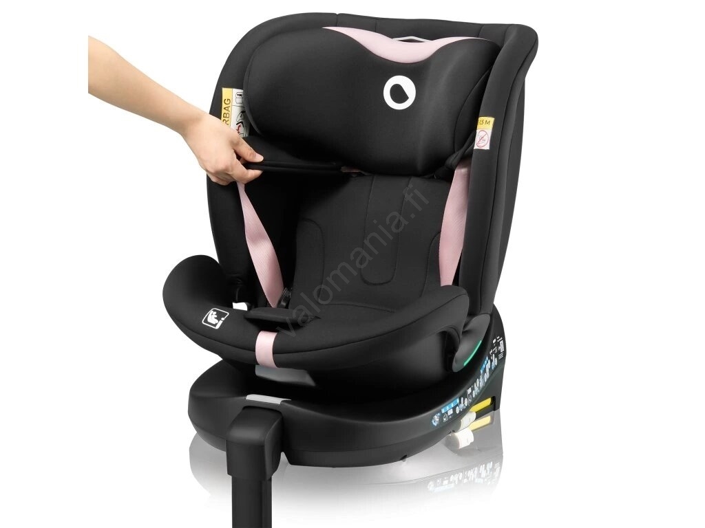 Lionelo i-Size 40-150 cm kääntyvä turvaistuin jalustalla, musta/vaaleanpunainen | Valomania