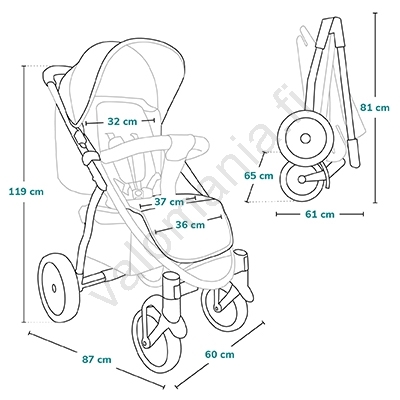 • Vaunut on varustettu säilytystilalla ostoksille tai leluille.