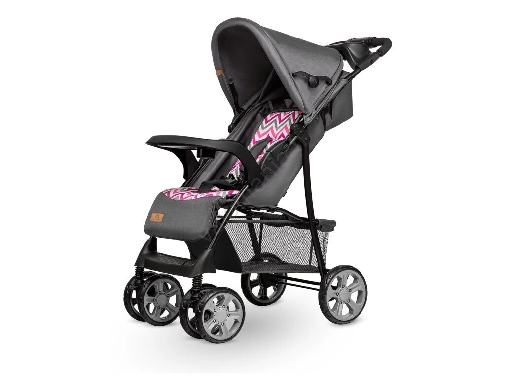• Rattaissa on tarjotin, johon lapsi voi laskea pullon tai välipalan kävelyn aikana.