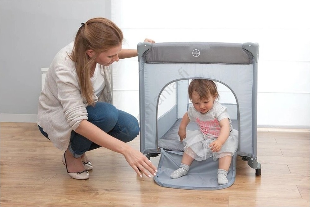 • Taitettava matkasänky, jota voi käyttää myös leikkiaitauksena.