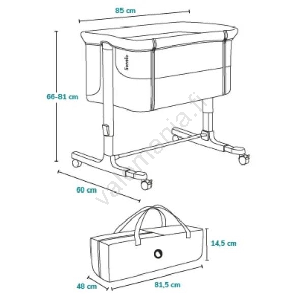 • Sopii erinomaisesti lisävuoteeksi, joka voidaan kiinnittää sänkyyn, tai itsenäiseksi nukkumapaikaksi.