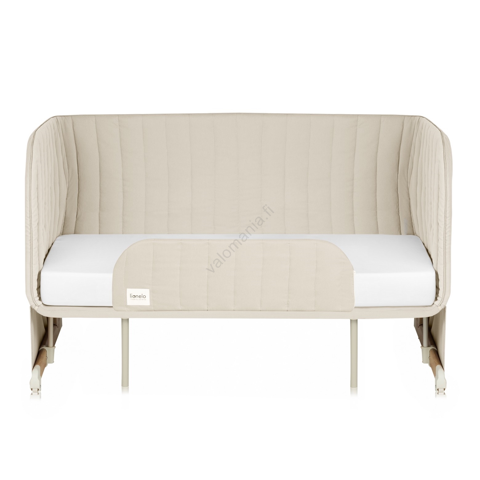 • Lisävuode irrotettavalla sivulaidalla ja säädettävillä jaloilla vanhempien sängyn korkeuteen.