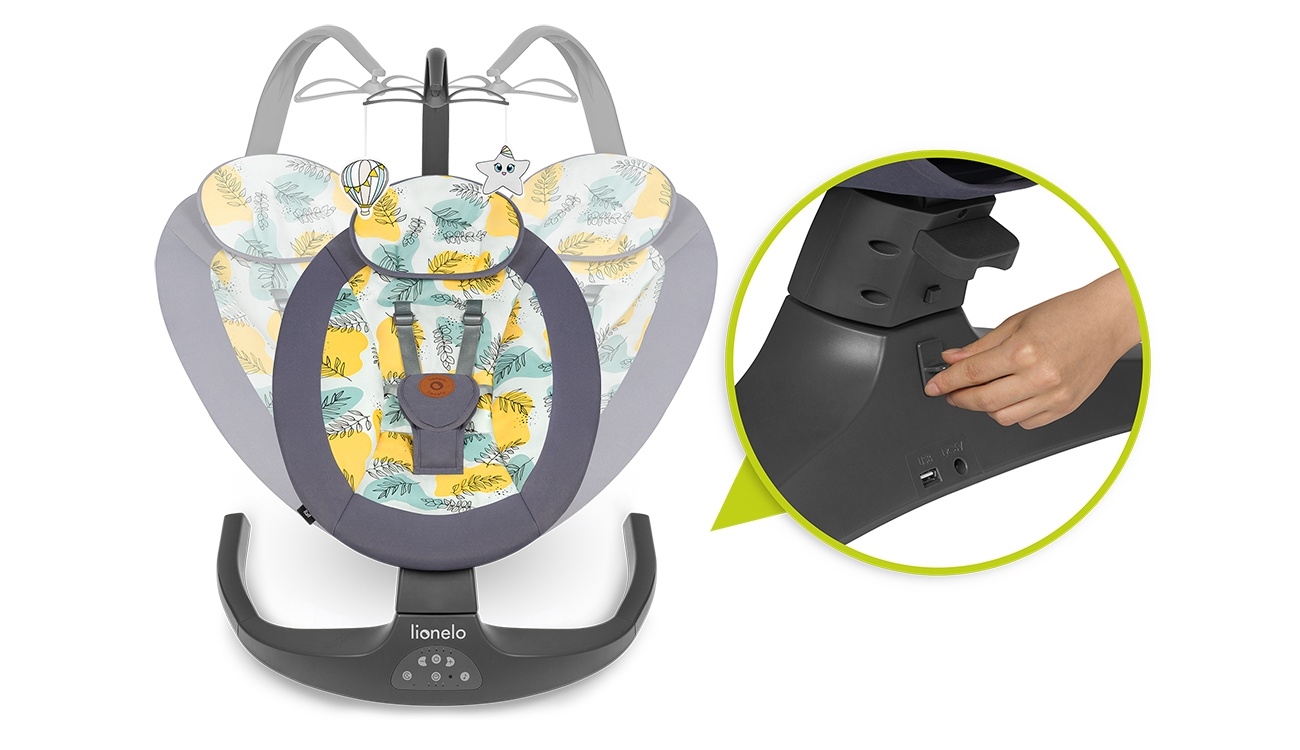 • Lionelo - Lasten keinu musiikkitoiminnolla RALF 4xAA grafiitinharmaa + kaukosäädin