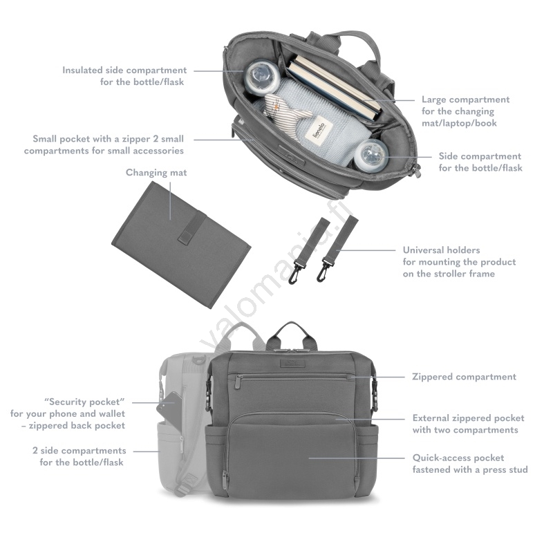 Lionelo - hoitolaukku rattaisiin CUBE Grey Stone | Valomania