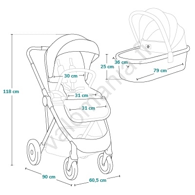 • Täydellinen lisävarustesarja (hyttysverkko, sadesuoja, päälliset, laukku, hoitoalusta).