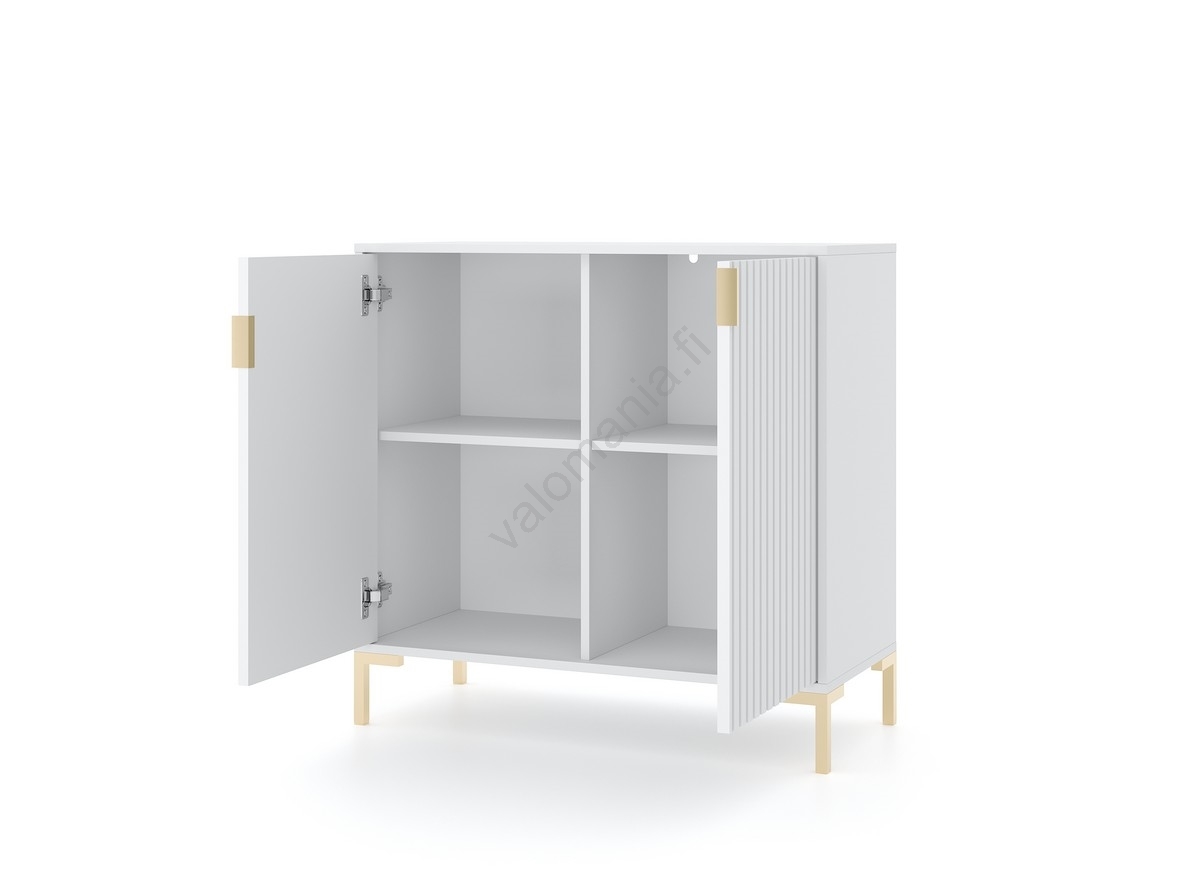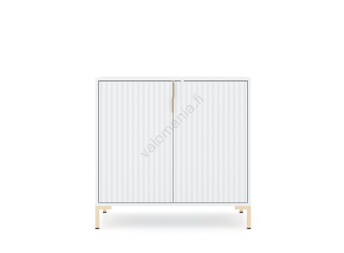 • Siinä on neljä hyllyä ja kaksi ovea, joissa on pystysuorat uurteet.