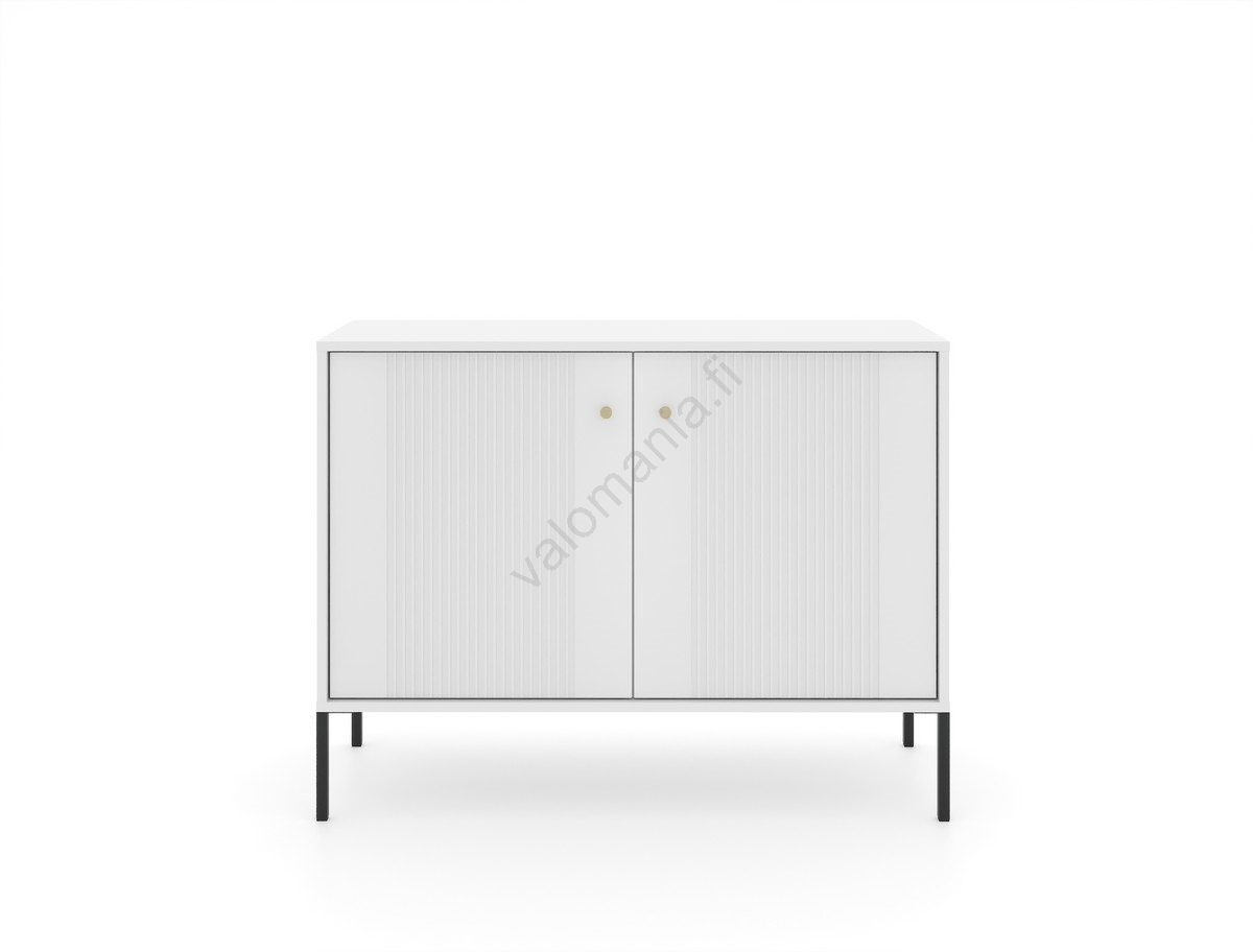 • Siinä on kaksi hyllytasoa ja ovet, joissa on pystysuuntainen uurrettu kuvio.
