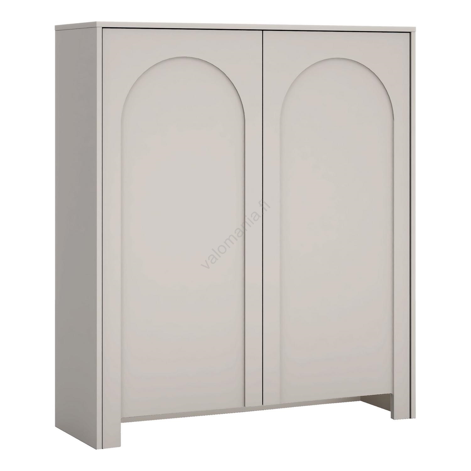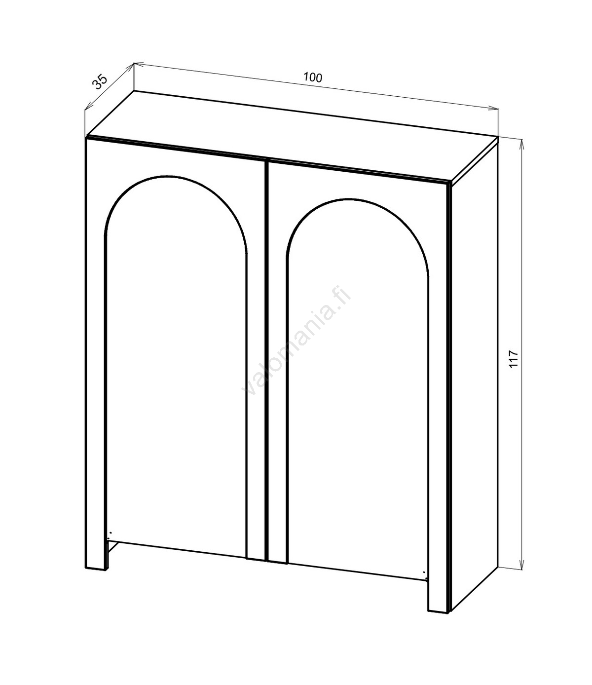 • Siinä on kaksi ovea, jotka on koristeltu hillityllä kaarevalla kuvioinnilla, mikä luo hienostuneen visuaalisen ilmeen.