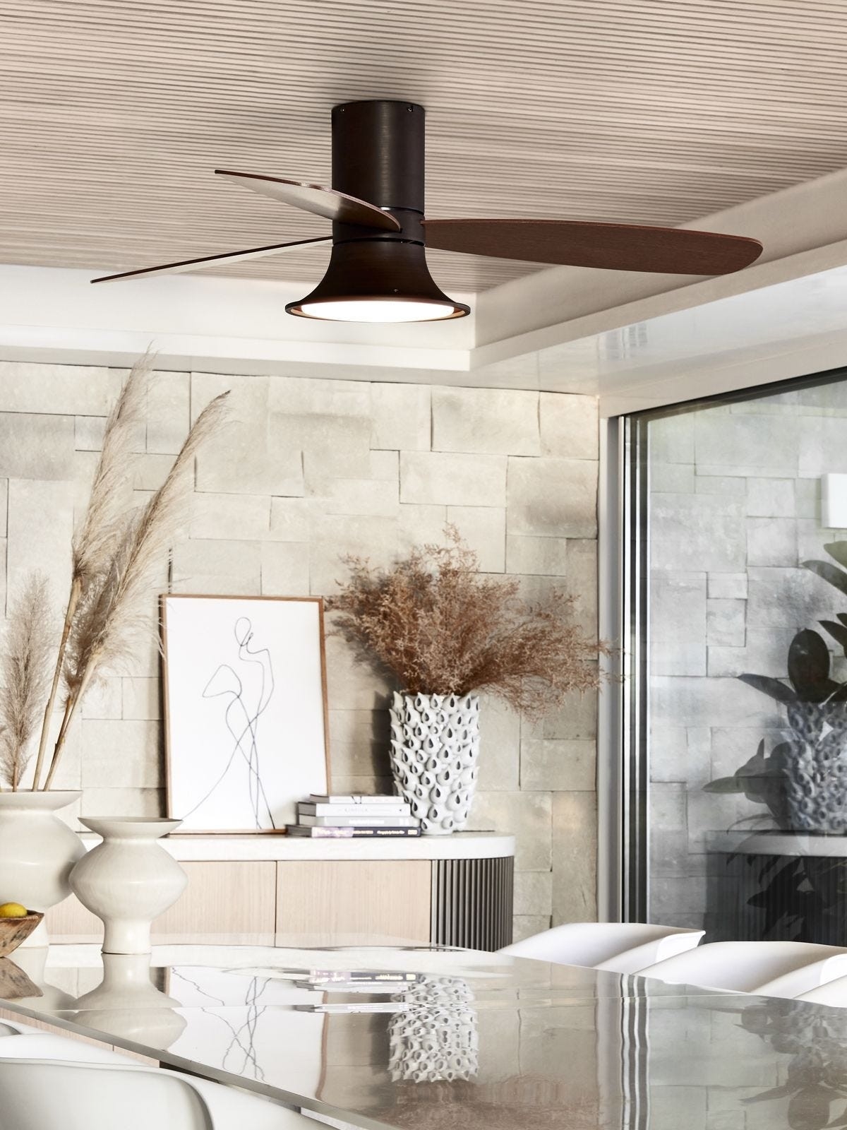 • Tyylikäs kattotuulettaja, joka sopii kaikkiin sisustustyyleihin.