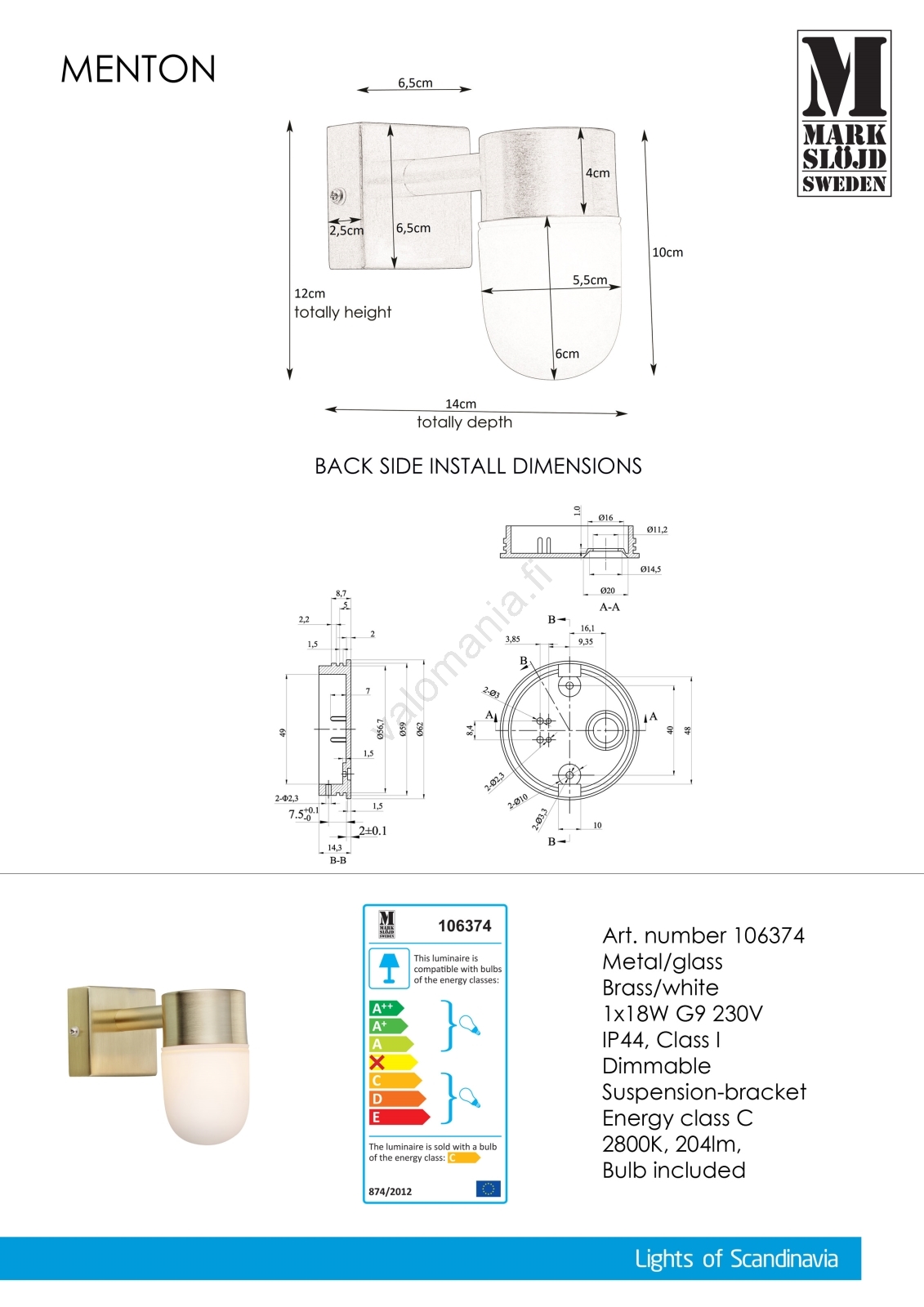 Markslöjd 106374 - Kylpyhuoneen seinävalaisin MENTON 1xG9/18W/230V IP44 | Valomania