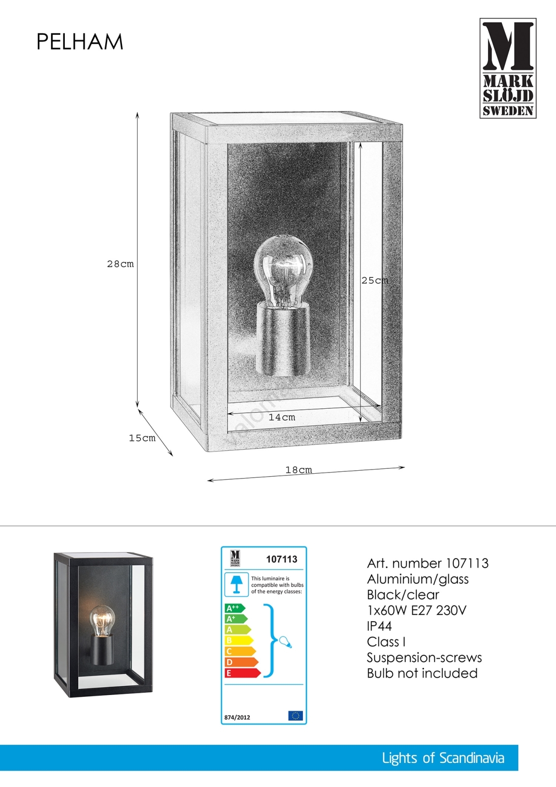 Markslöjd 107113 - Ulkoseinävalaisin PELHAM 1xE27/60W/230V IP44 musta merkitsee kaunista ja toimivaa muotoilua.  Valoon sopii polttimo, jossa on E27-kanta. Täältä voit ostaa myös muita lamppuja edulliseen hintaan. Mielenkiintoinen lisä kotiisi.