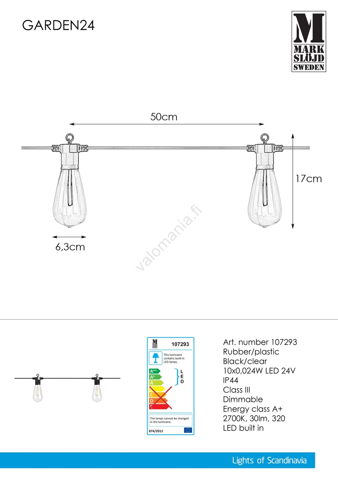 Markslöjd 107293 - LED-ulkovalosarja GIRLANDA GARDEN 10xLED 5,5m IP44 | Valomania
