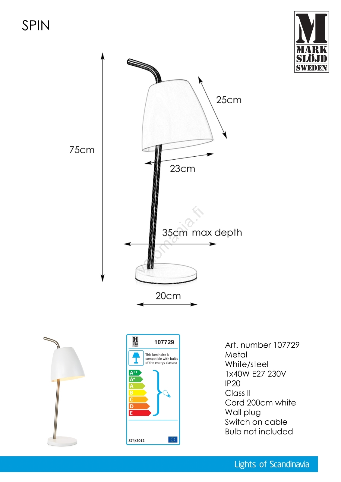 Markslöjd 107729 - Pöytävalaisin SPIN 1xE27/40W/230V | Valomania