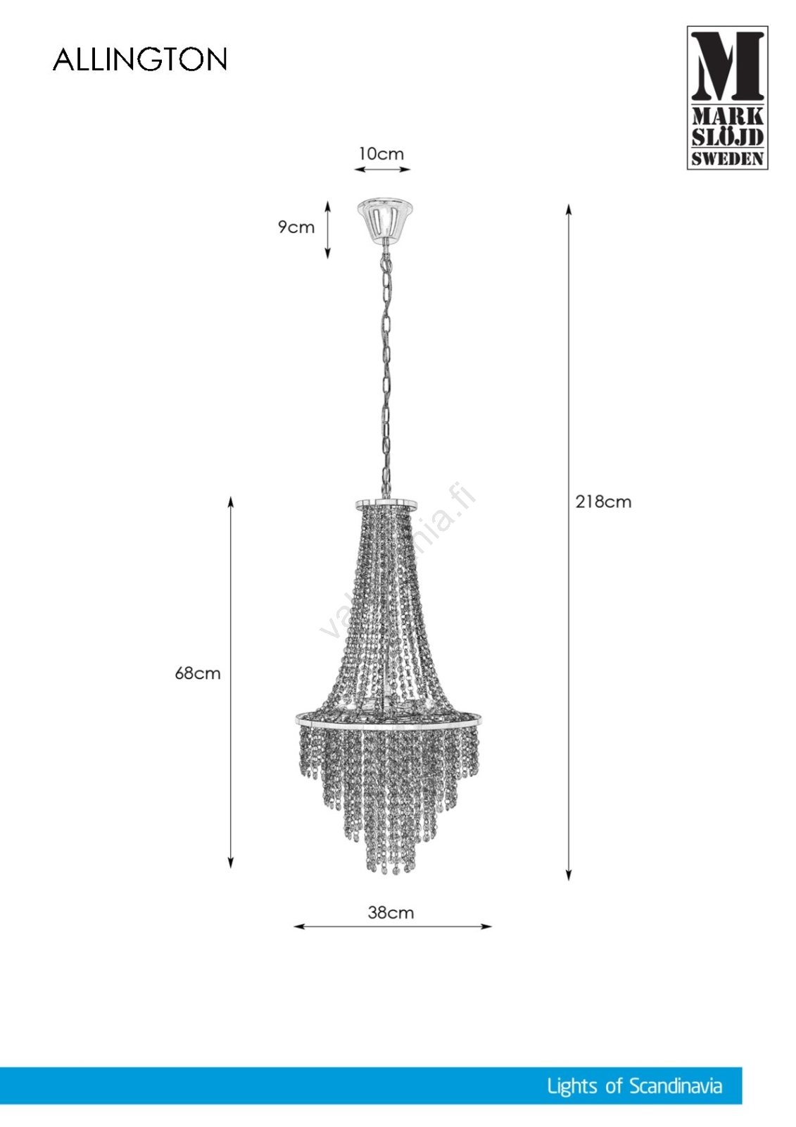 Markslöjd 108125 - Kristalli-ketjukattokruunu ALLINGTON 3xE14/25W/230V merkitsee kaunista ja toimivaa muotoilua.  Valoon sopii polttimo, jossa on E14-kanta. Täältä voit ostaa myös muita lamppuja edulliseen hintaan. Mielenkiintoinen lisä kotiisi.
