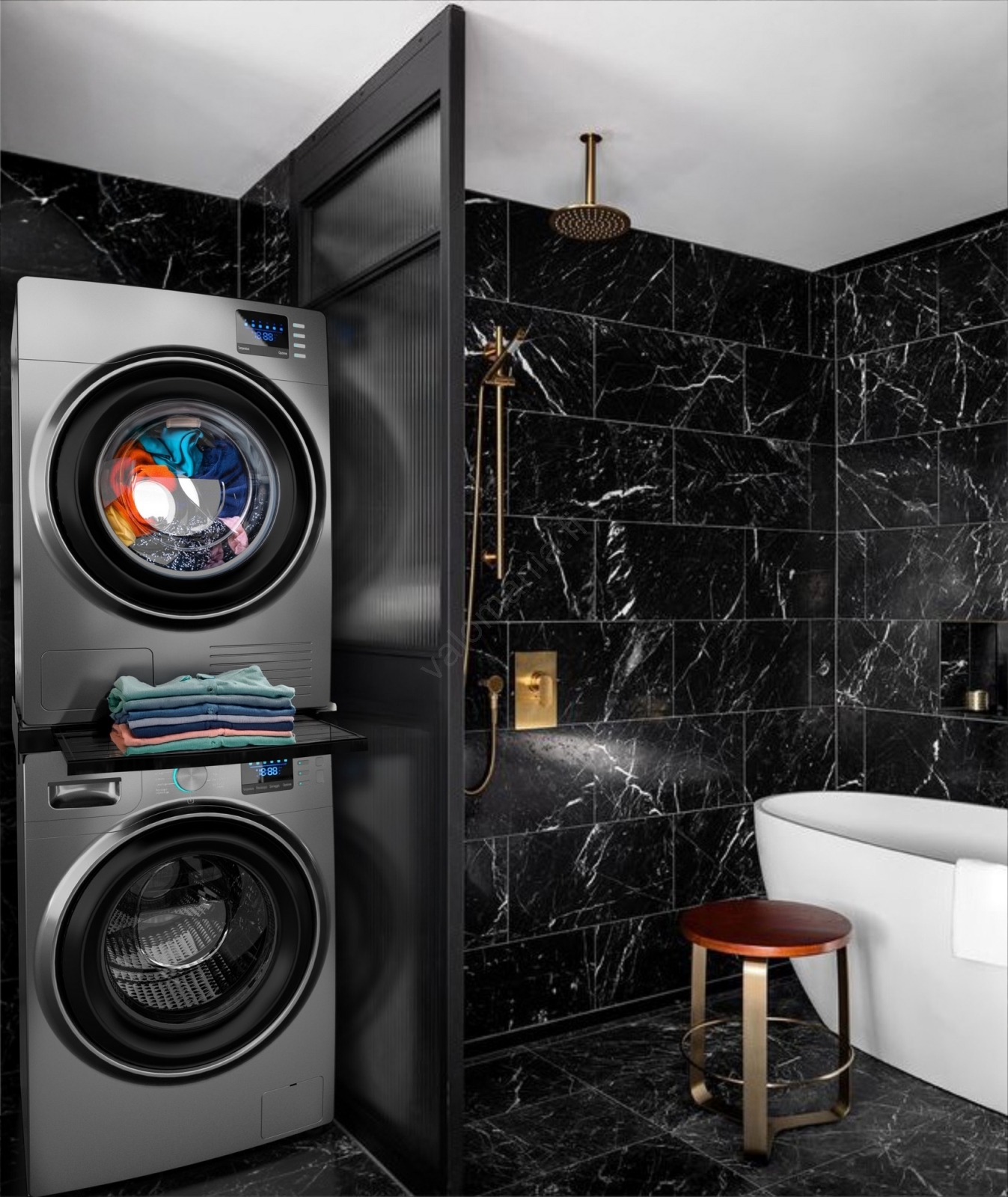 Meliconi 656136 - 60 cm jalusta pesukoneelle ja kuivausrummulle vetolaatikolla, musta | Valomania