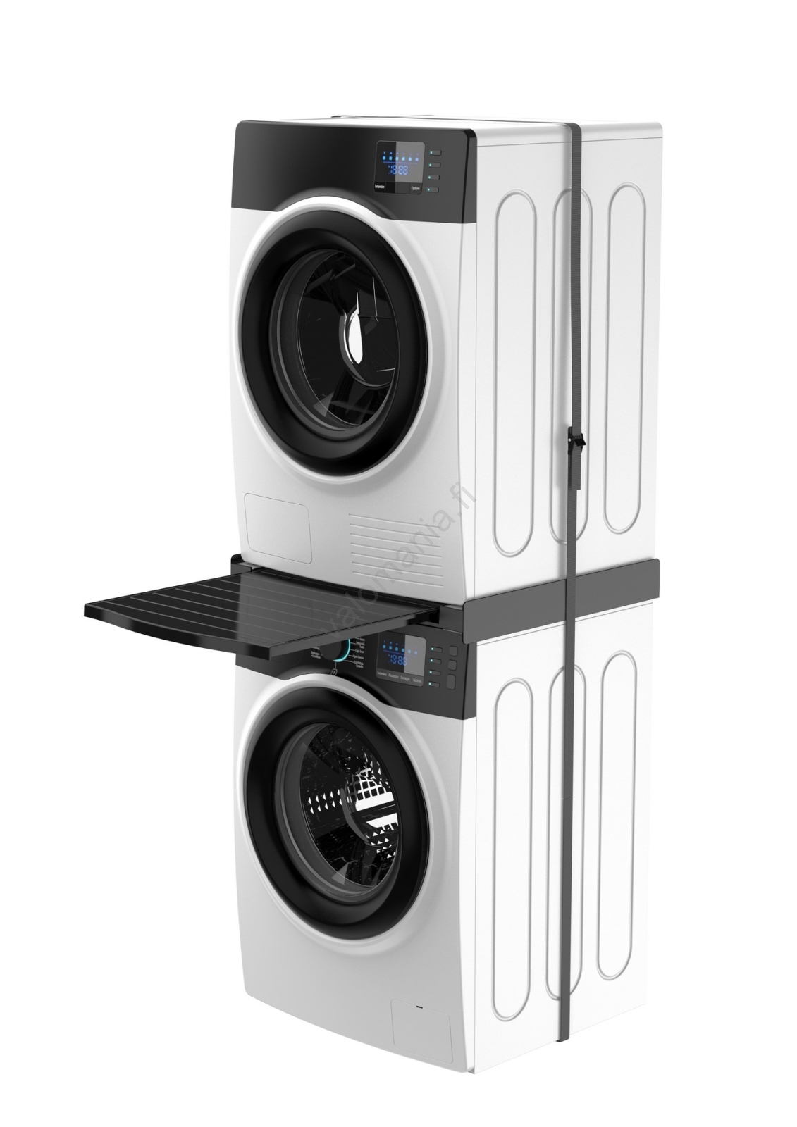 • Monikäyttöinen yhdistämissarja 45–70 cm syvyisille pesukoneille ja etutäyttöisille kuivausrummuille.