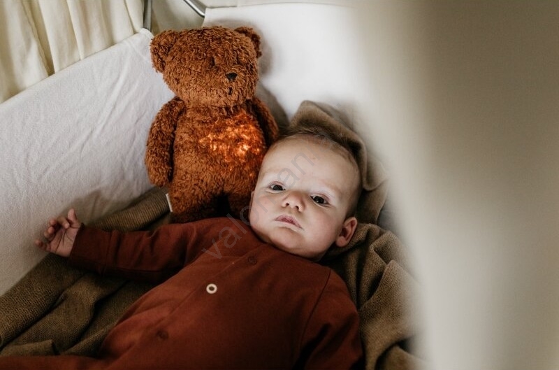• Moonie-unileluapuvun muodossa oleva suloinen nalle, jossa on yövalo ja rentouttavia ääniä, auttaa vauvaa nukahtamaan helpommin.