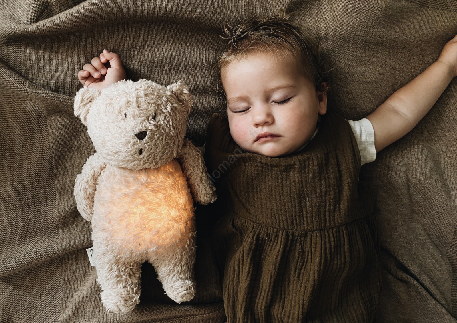 • Moonie - Snuggle buddy melodialla ja valolla pieni karhu 2.0 organic caramel
