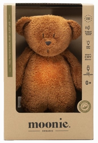 Moonie - Snuggle buddy melodialla ja valolla pieni karhu organic caramel natur | Valomania