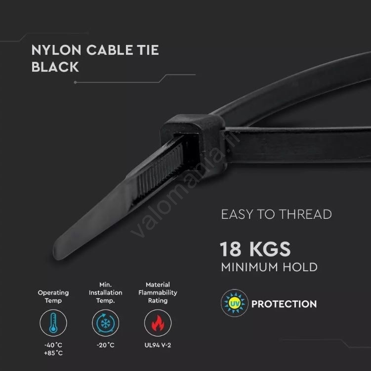 Muovinen taittohihna 3,5x200mm 100kpl musta | Valomania