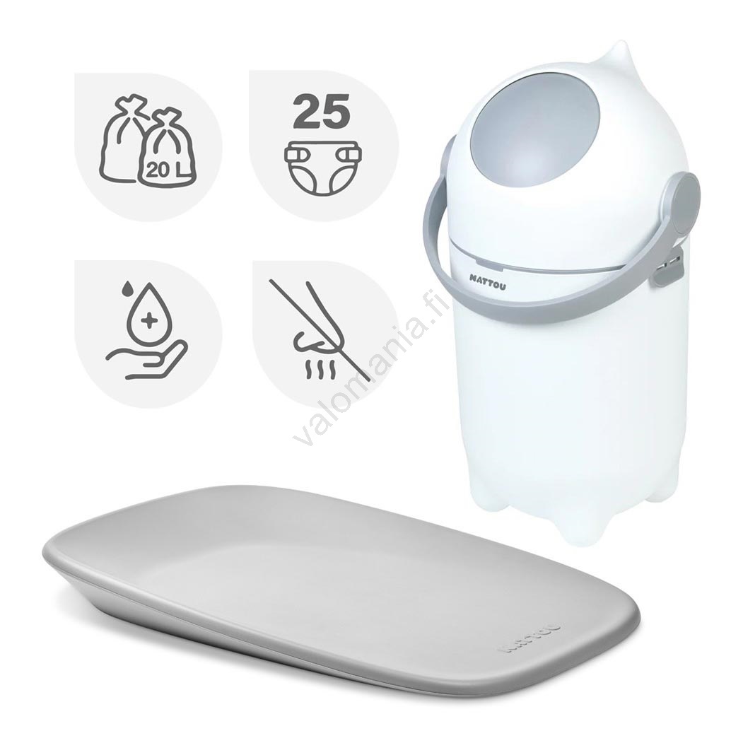 Nattou - Vaipparoskis ja hoitoalusta SOFTY 50x70 cm valkoinen/harmaa | Valomania