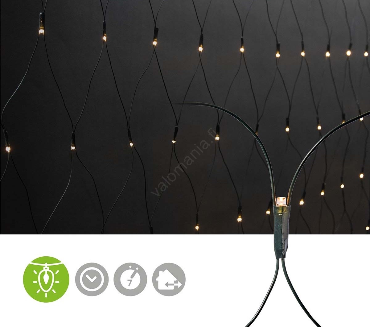 • Tämä koristeellinen LED-ketju (verkko) luo miellyttävän lämpimän valkoisen valon tunnelman.