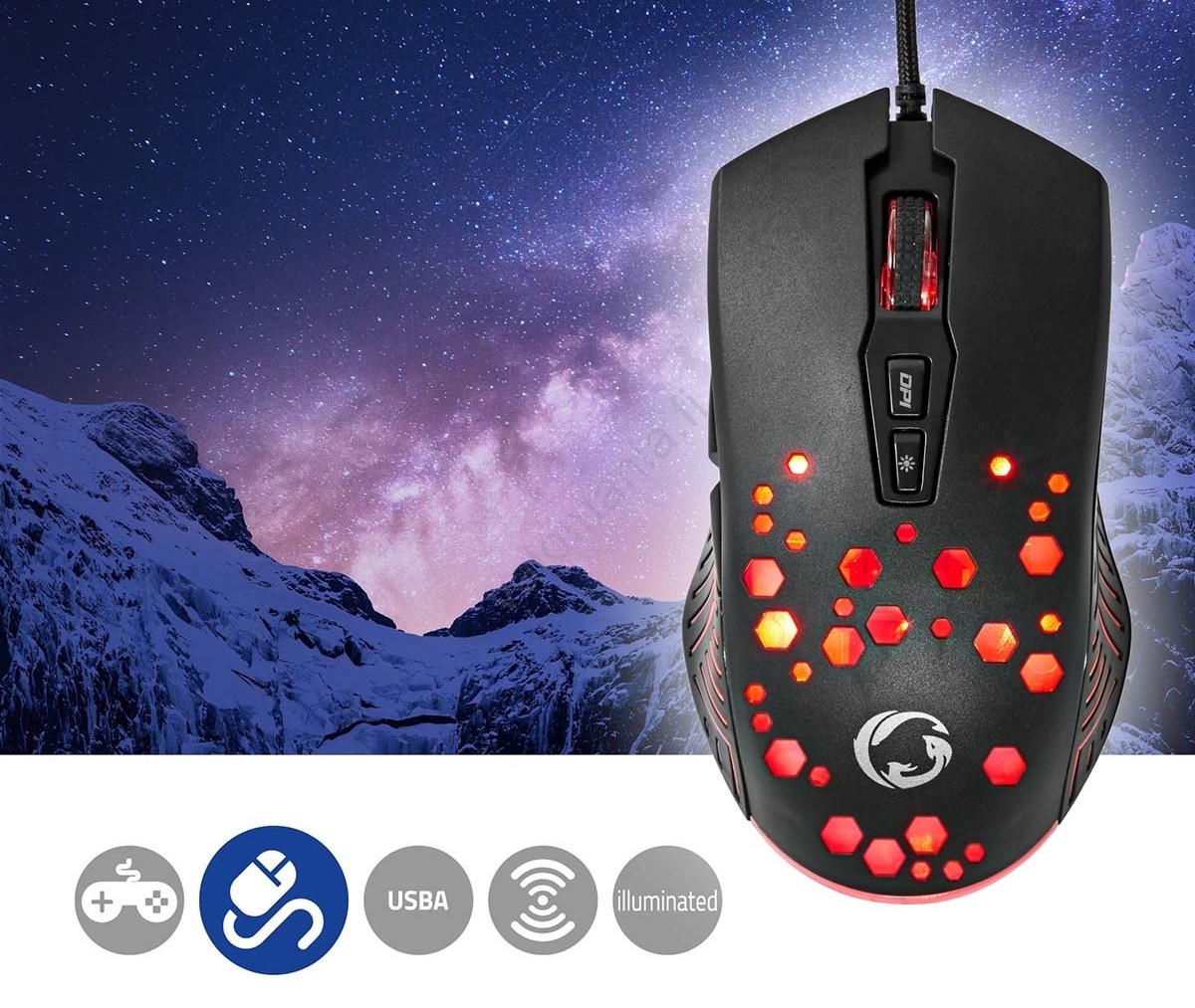 Nedis GMWD410BK- LED Pelihiiri 800/1200/2400/3200/4800/7200 DPI 7 painiketta musta | Valomania