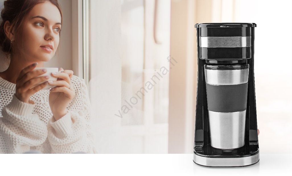 • Tämä yhden kupin kahvinkeitin sopii täydellisesti kiireiseen aamurutiiniin.