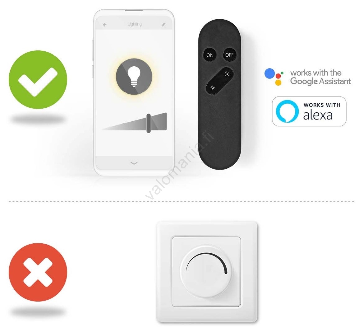 • Puheohjauksen tuki – Amazon Alexan tai Google Homen kautta