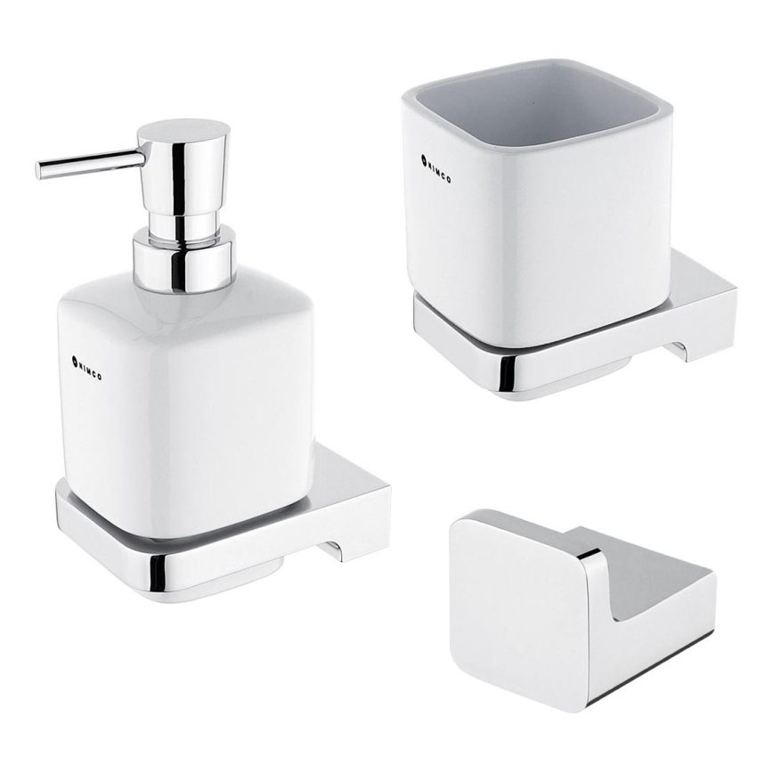 • NIMCO MA setti-31K-26 - Seinään kiinnitettävä saippua-annostelija, hammasharjateline ja seinäkoukku MAYA 320 mm valkoinen/kiiltävä kromi