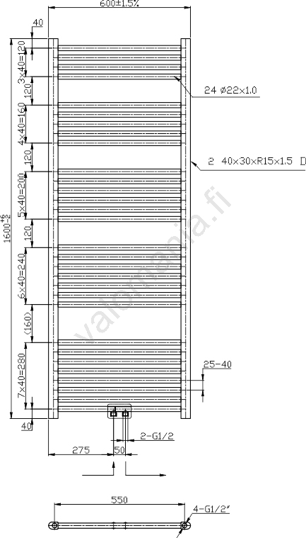 Novaservis - Kylpyhuoneen tikasradiatori/pyyhekuivain 544W/230V 160x60 cm kiiltävä kromi suora