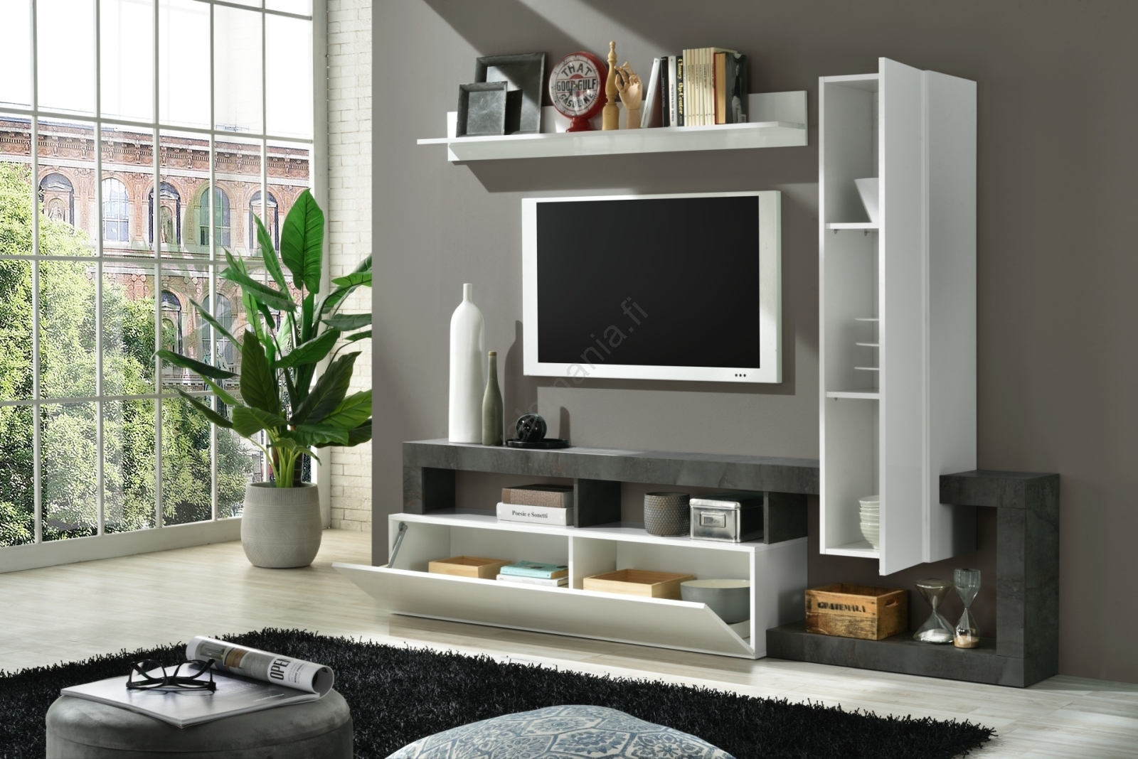 • Olohuoneen seinäkalusto LENOR, valkoinen/harmaa betoni
