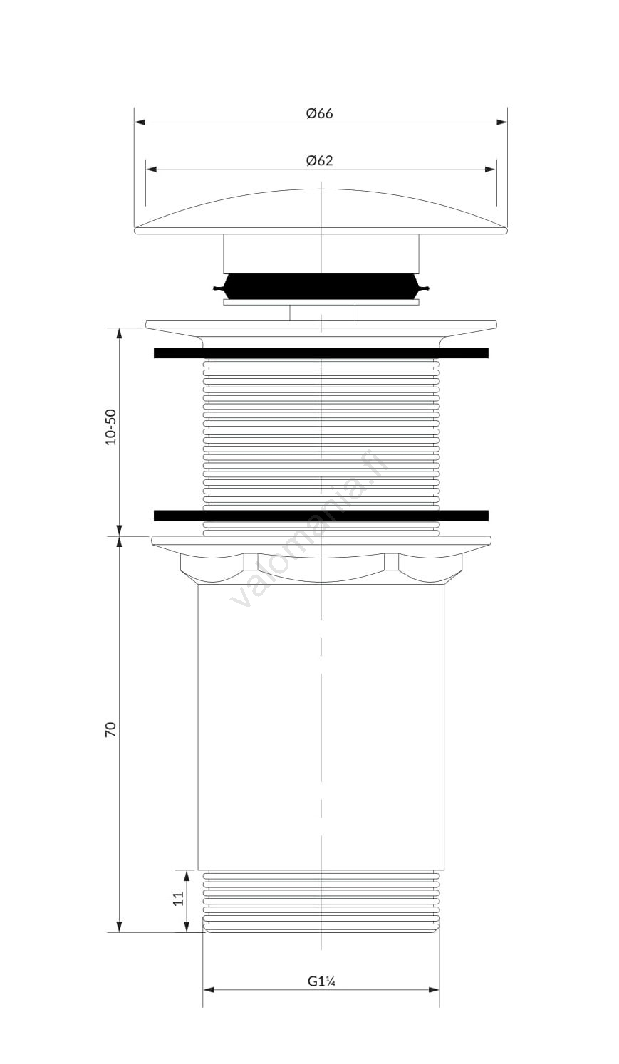 • Mechanismi, joka mahdollistaa pesualtaan viemärin helpon avaamisen ja sulkemisen pelkällä tulpan painalluksella.