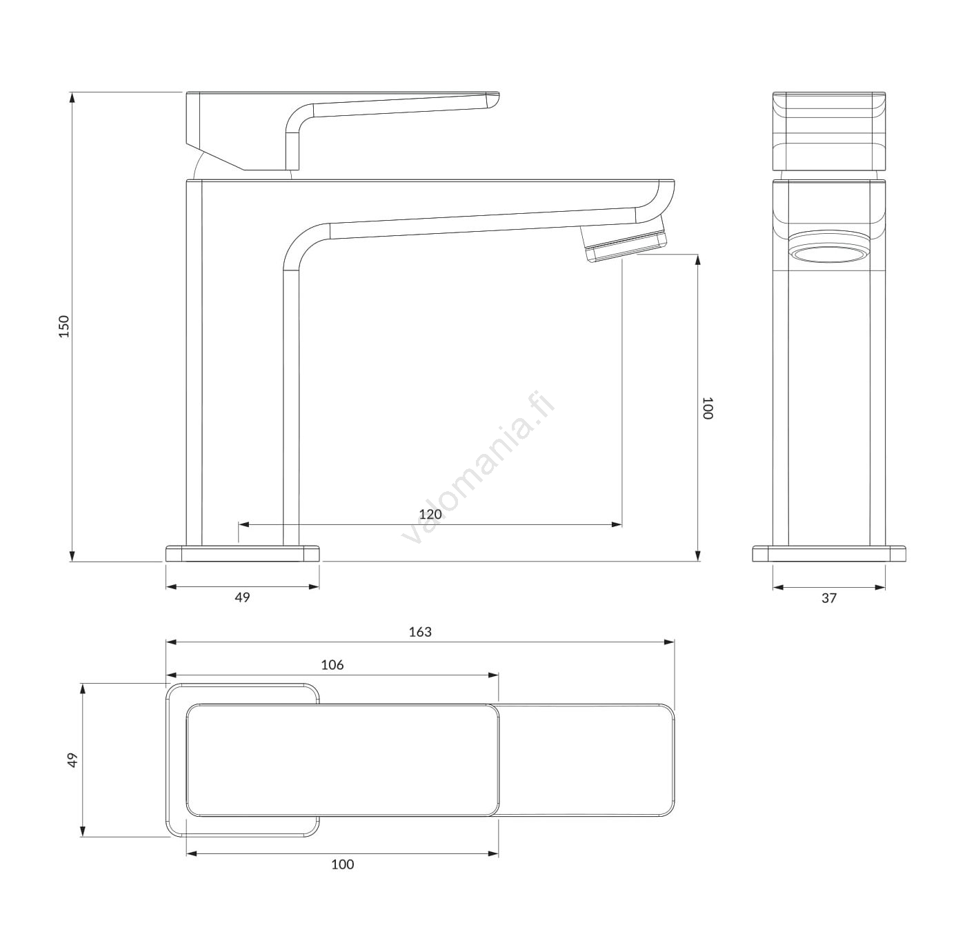 OMNIRES PM7410BL - Altaan hana PARMA 15 cm matta musta | Valomania