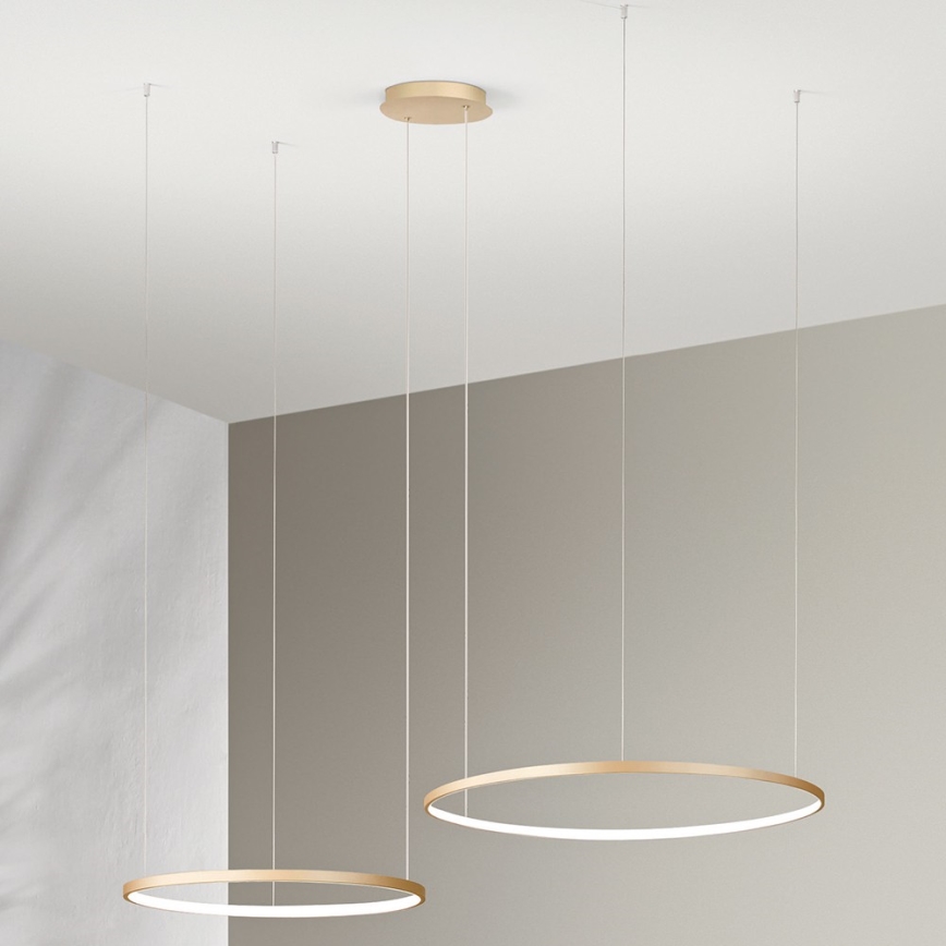 Ondaluce - SOEL LED-himmennettävä riippuvalaisin vaijerilla LED/28W/230V + LED/38W, halkaisijat 80/60 cm, kultainen