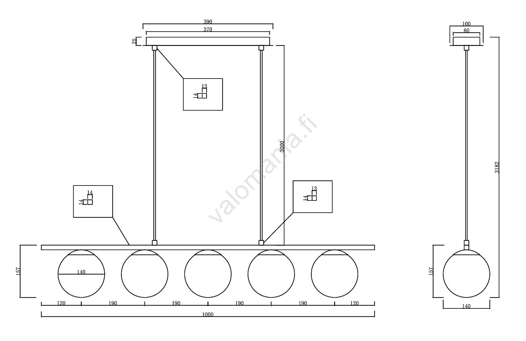 Ondaluce - riippuvalaisin MONILE 5xE14/10W/230V kulta/valkoinen | Valomania