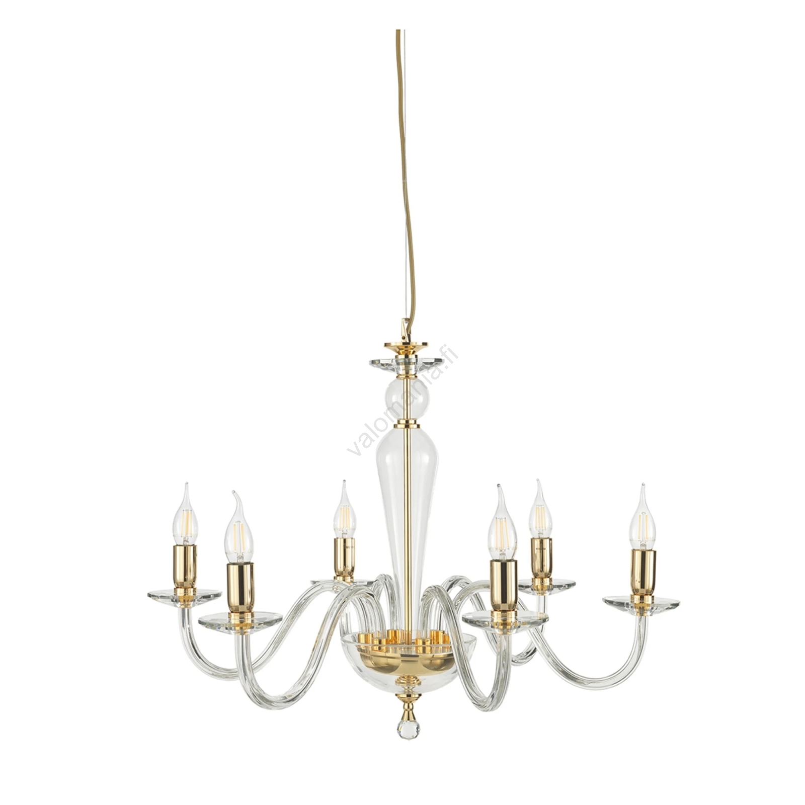 Ondaluce - Riippuvalaisin vaijerilla PAGANINI 6xE14/10W/230V halkaisija 70 cm kulta/kirkas | Valoman