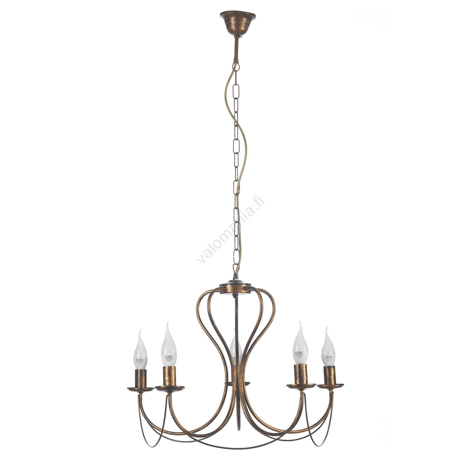 ONLI - Kattokruunu ketjussa CANDELA 5xE14/6W/230V pronssi merkitsee kaunista ja toimivaa muotoilua.  Valoon sopii polttimo, jossa on E14-kanta. Täältä voit ostaa myös muita lamppuja edulliseen hintaan. Mielenkiintoinen lisä kotiisi.